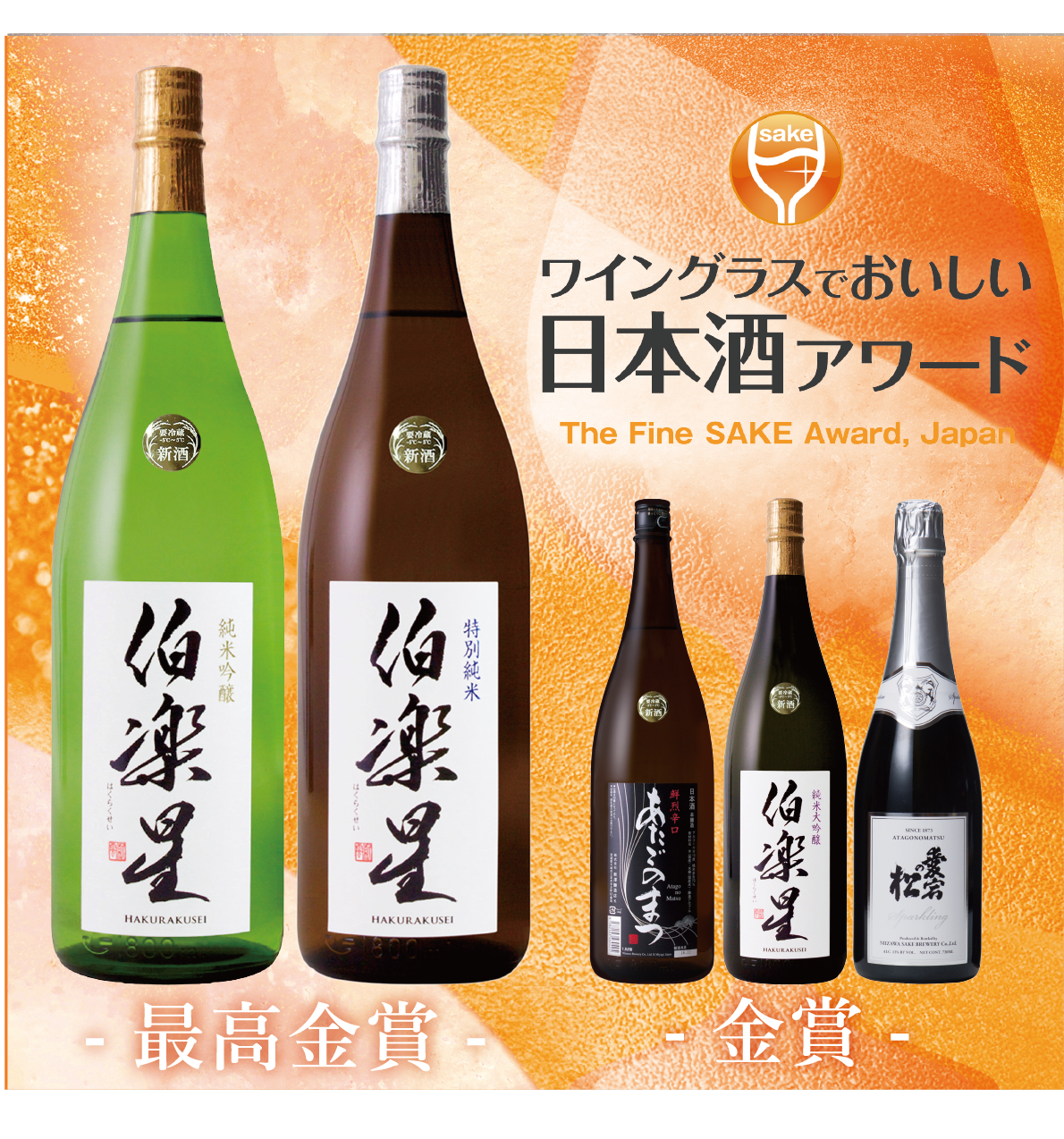 弊社は「伯楽星 特別純米酒」「伯楽星 特別純米」最高金賞